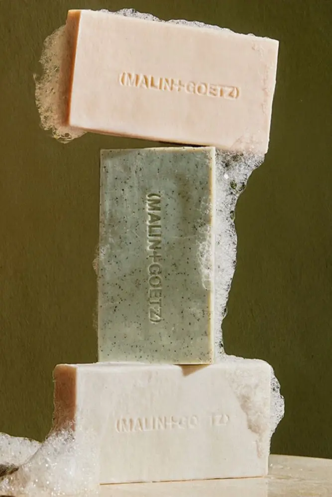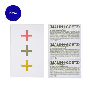 The Body Bar Trio da MALIN + GOETZ , um trio de barras de limpeza, infundidas com ingredientes para cuidados com a pele de alto desempenho.